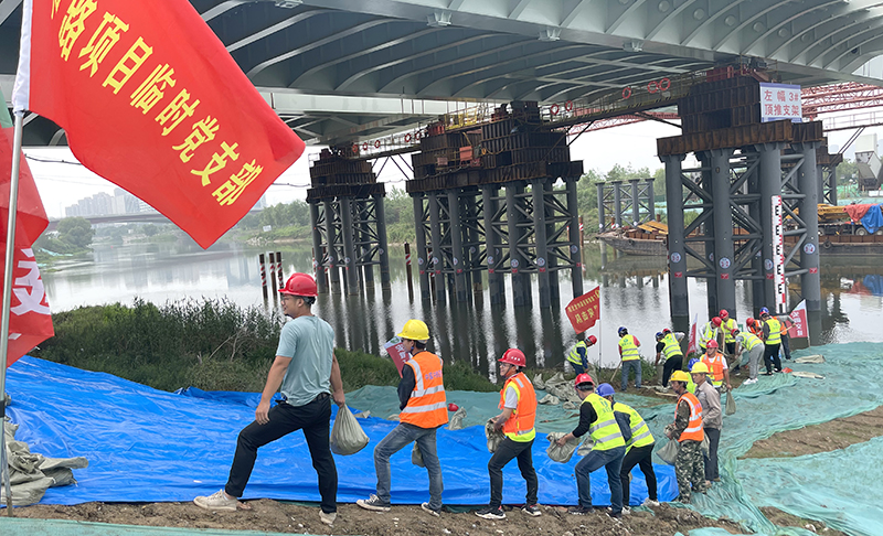 本次演練背景為連續(xù)強(qiáng)降雨天氣,南淝河水位持續(xù)上漲即將突破警戒線,隨時會洪水破堤淹沒施工便道圍堰堤壩、危害周圍居民財(cái)產(chǎn)及生命安全……險(xiǎn)情告急!