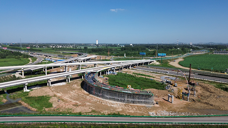 我標(biāo)段承建的固蚌高速洪集樞紐二期工程,為落地式組合樞紐,向西距蚌埠北互通4.3公里,樞紐互通向南連接國(guó)道G329,設(shè)匝道收費(fèi)站。項(xiàng)目建成后將實(shí)現(xiàn)與寧洛高速公路之間的交通轉(zhuǎn)換及國(guó)道G329交通直接上下高速公路的功能,便捷了蚌埠市從洪集出入口上下寧洛高速,緩解了該市東北部交通壓力。
