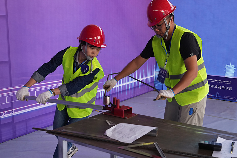 賽場上,王旭東、周蓉兩位選手沉著迎戰(zhàn)、不畏強(qiáng)手,信心十足地快速準(zhǔn)確切割鋼筋,沉著地檢測模擬構(gòu)件的缺陷,全神貫注地使用儀器進(jìn)行施工放樣,每個(gè)項(xiàng)目每個(gè)環(huán)節(jié)均都能從容面對,展示了交建人扎實(shí)的技能功底和良好的心理素質(zhì)。