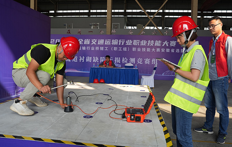 據(jù)悉,此次大賽由安徽省交通運(yùn)輸廳、安徽省人力資源和社會保障廳共同舉辦。本次大賽共設(shè)置城市軌道交通行車調(diào)度員、新能源汽車維修工、橋隧工、電動港口裝卸機(jī)械司機(jī)4個(gè)職業(yè)賽項(xiàng)。比賽采取理論知識競賽和操作技能競賽相結(jié)合的方式,涵蓋了鋼筋骨架加工、隧道襯砌缺陷無損檢測、施工放樣3個(gè)競賽項(xiàng)目。