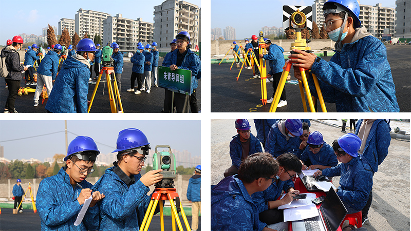 本次大賽分為測(cè)量理論知識(shí)考核和技能實(shí)操競賽兩個(gè)部分。在理論考試中,各位學(xué)員邊思考邊答題,秩序井然。在“全站儀對(duì)點(diǎn)賽”和“水準(zhǔn)+全站”實(shí)操競賽中,導(dǎo)師們通過抽簽,將身份轉(zhuǎn)換為裁判,對(duì)比賽進(jìn)行全程跟蹤。隨著總裁判的一聲令下,參賽學(xué)員們有條不紊地啟動(dòng)全站儀、水準(zhǔn)儀等測(cè)量儀器設(shè)備。