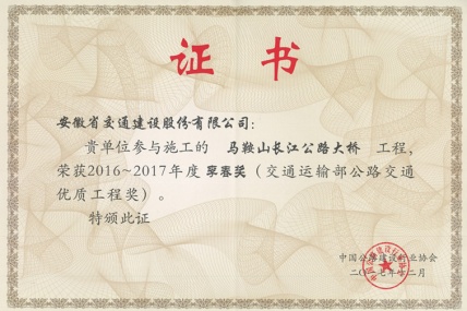 7月31日,全國公路行業(yè)高峰論壇頒發(fā)2016-2017年度全國公路優(yōu)質(zhì)工程獎——李春獎——由安徽交通建設(shè)股份有限公司承建的馬鞍山長江公路大橋、安徽省六安至岳西至...