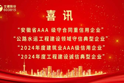 近日,安徽省交通建設(shè)股份有限公司憑借誠信經(jīng)營和良好的社會信譽連獲“安徽省AAA 級守合同重信用企業(yè)”、“2024年公路水運工程建設(shè)領(lǐng)域守信典型企業(yè)”、“2024...