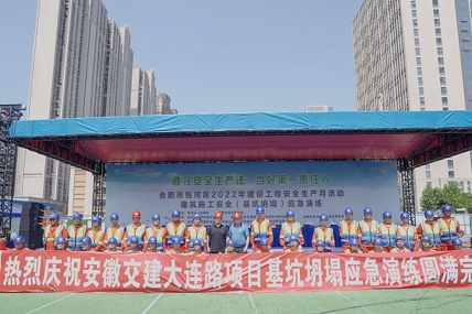 6月17日上午9時許,安徽省交通建設(shè)股份有限公司大連路項目承辦的合肥市包河區(qū)2022年建筑施工安全(基坑坍塌)應(yīng)急演練在項目施工現(xiàn)場隆重舉行。