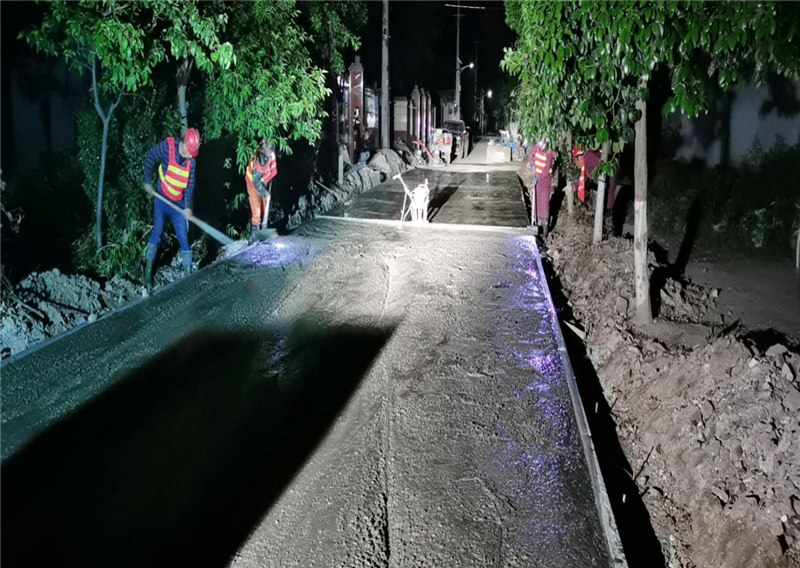 凌晨時分,城市的萬千燈火漸弱,界首農(nóng)村公路項目工地上卻燈火通明,挖掘機(jī)、灰土拌合機(jī)、混凝土拌合站轟鳴聲此起彼伏,工程運(yùn)輸車來回穿梭,一片忙碌的景象。