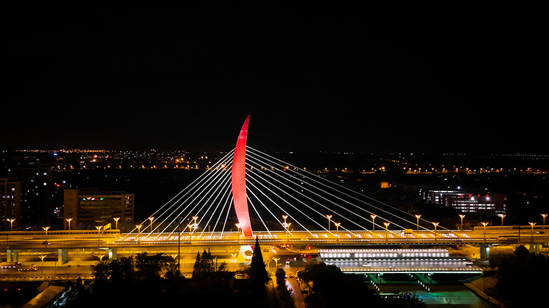 包公大道主跨152m跨越店埠河獨塔單索面斜拉橋(寓意:包公故里、日月同輝)